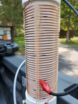 Previous Image Next Image 12-Ft Whip – Band Markings My homebrew loading coil. If you look closely, you can see the marks I added. As shown, the coil is tapped for the 30M band. My homebrew loading coil. If you look closely, you can see the marks I added. As shown, the coil is tapped for the 30M band.