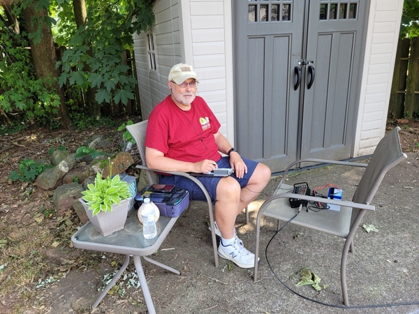 Previous Image Next Image Field Day 2024 – WB3GCK Yours truly operating backyard-portable (Photo by my (far) Better Half) Yours truly operating backyard-portable (Photo by my (far) Better Half)