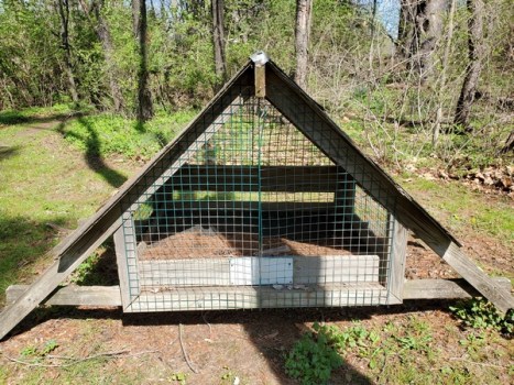 This empty cage was located in the back of the clearing I was in. I have no idea what kind of critter it might have been used for.