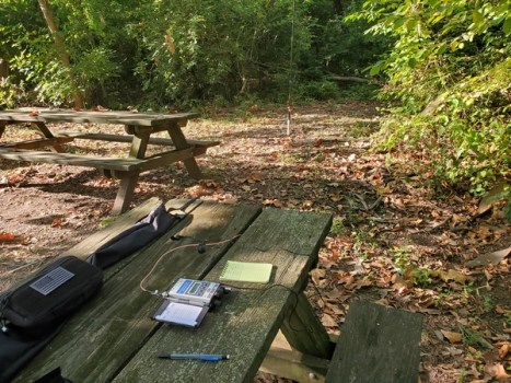 Previous Image Next Image Norristown Farm SP 20250914 – Rig and Antenna My Elecraft KH1 with the antenna off in the distance