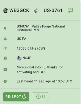 Previous Image Next Image Valley Forge 20250829 – Spot Thanks to NU4F for the nice spot from Florida Thanks to NU4F for the nice spot from Florida