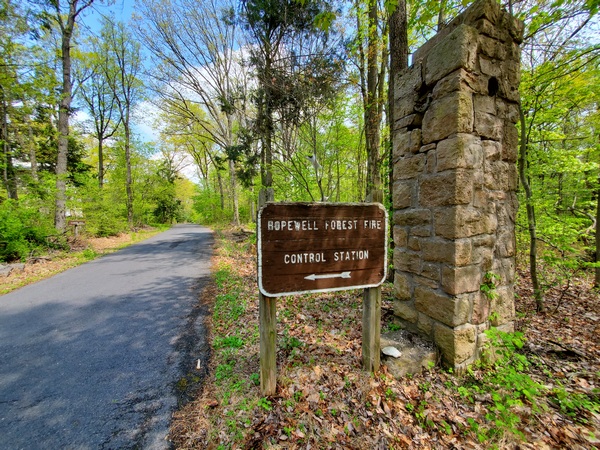 Previous Image Next Image Wm Penn St Forest – Sign Heading up the hil towards the Hopewell Fire Tower in William Penn State Forest Heading up the hil towards the Hopewell Fire Tower in William Penn State Forest